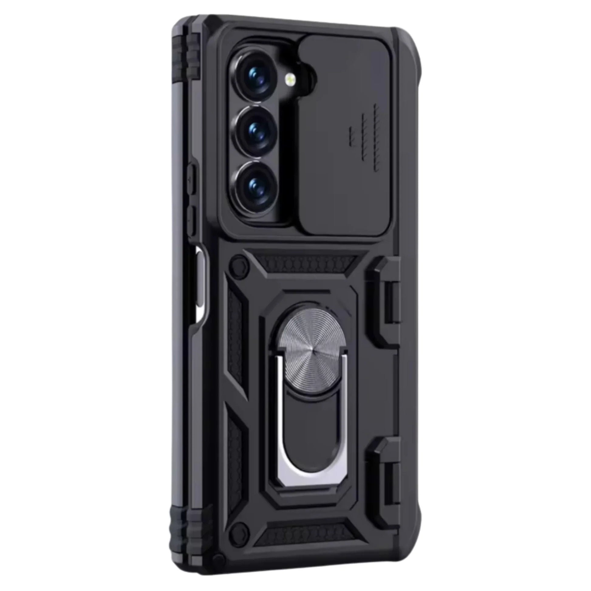 Ultimate defense for your Galaxy Z Fold. Get robust dual-material protection against drops and scratches, plus a handy built-in metal kickstand/holder. Close fit, secure grip.