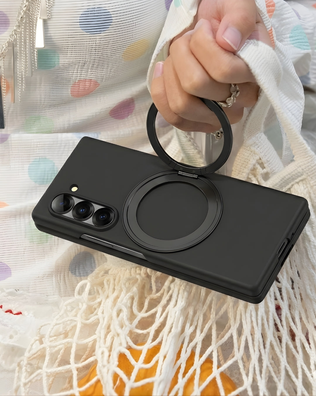 Experience ultimate stability and MagSafe convenience with this rugged, skin-friendly case for your Samsung Galaxy Z Fold. The integrated metal bracket provides a secure, adjustable stand, while powerful magnets ensure seamless MagSafe compatibility.