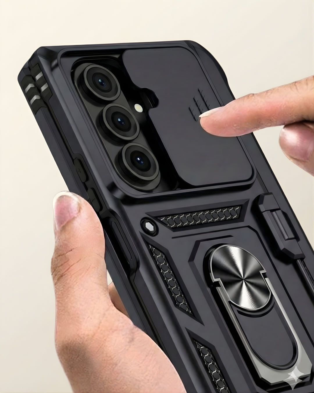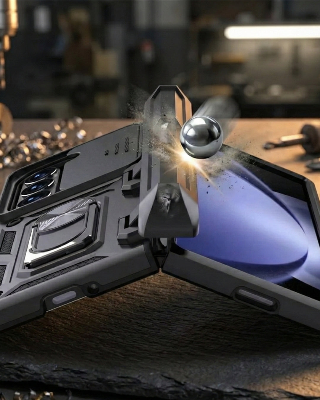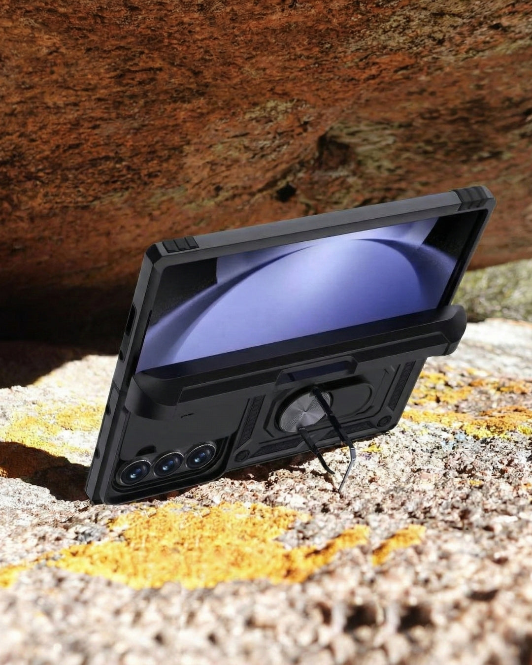 Ultimate defense for your Galaxy Z Fold. Get robust dual-material protection against drops and scratches, plus a handy built-in metal kickstand/holder. Close fit, secure grip.