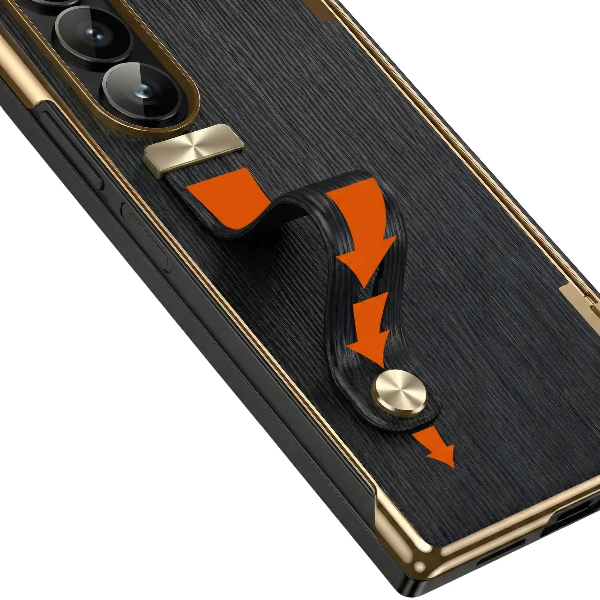 Wrap your Samsung Galaxy Z Fold in timeless elegance with this luxury PU leather case. Crafted from premium materials, it offers a sophisticated look and feel, enhanced by a convenient wrist strap for added security