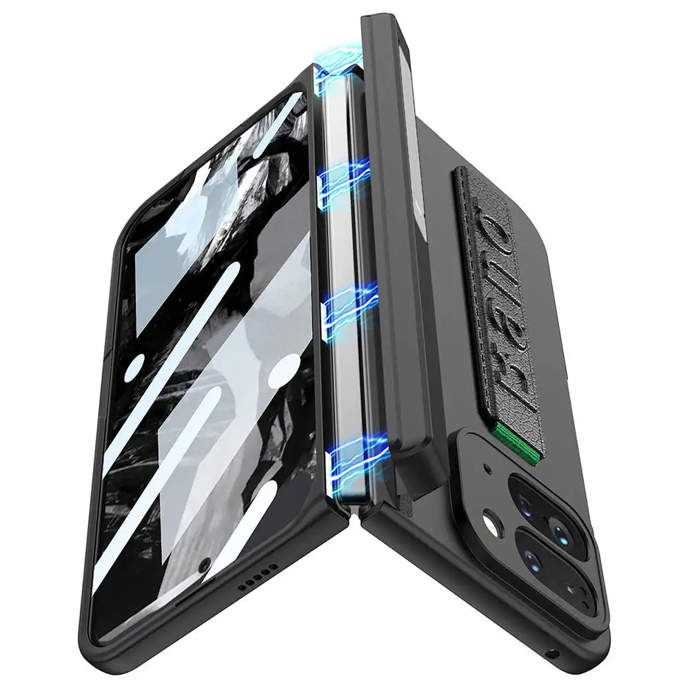 The integrated wrist strap provides a secure grip, preventing accidental drops, while the built-in magnetic hinge protection and outer screen protector offer complete 360° defense. Enjoy a slim, lightweight design that doesn't compromise on protection or functionality.