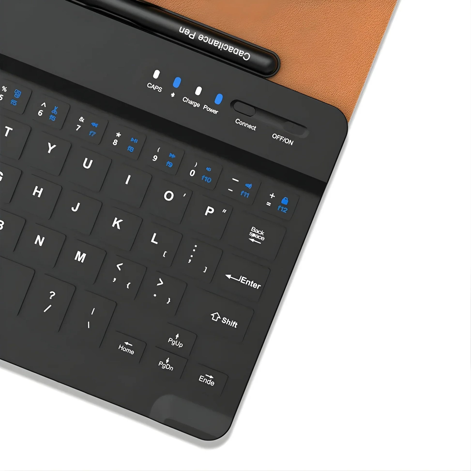 The wireless keyboard connects effortlessly via Bluetooth, transforming your Z Fold into a powerful productivity machine. This case seamlessly integrates with the Z Fold's unique folding design, offering both protection and enhanced functionality