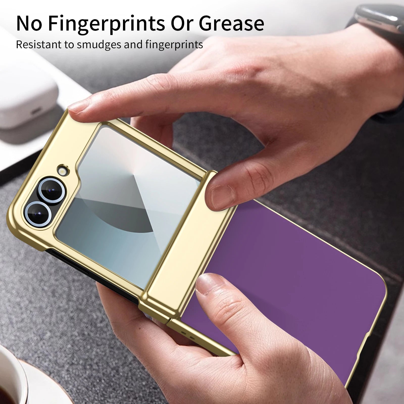 Protect your Samsung Galaxy Z Flip Series with a touch of elegance using this Plating Hinge Protection Case Screen. This stylish case features a durable plating finish on the hinge, adding a sophisticated accent while safeguarding the vulnerable hinge mechanism from scratches and damage.