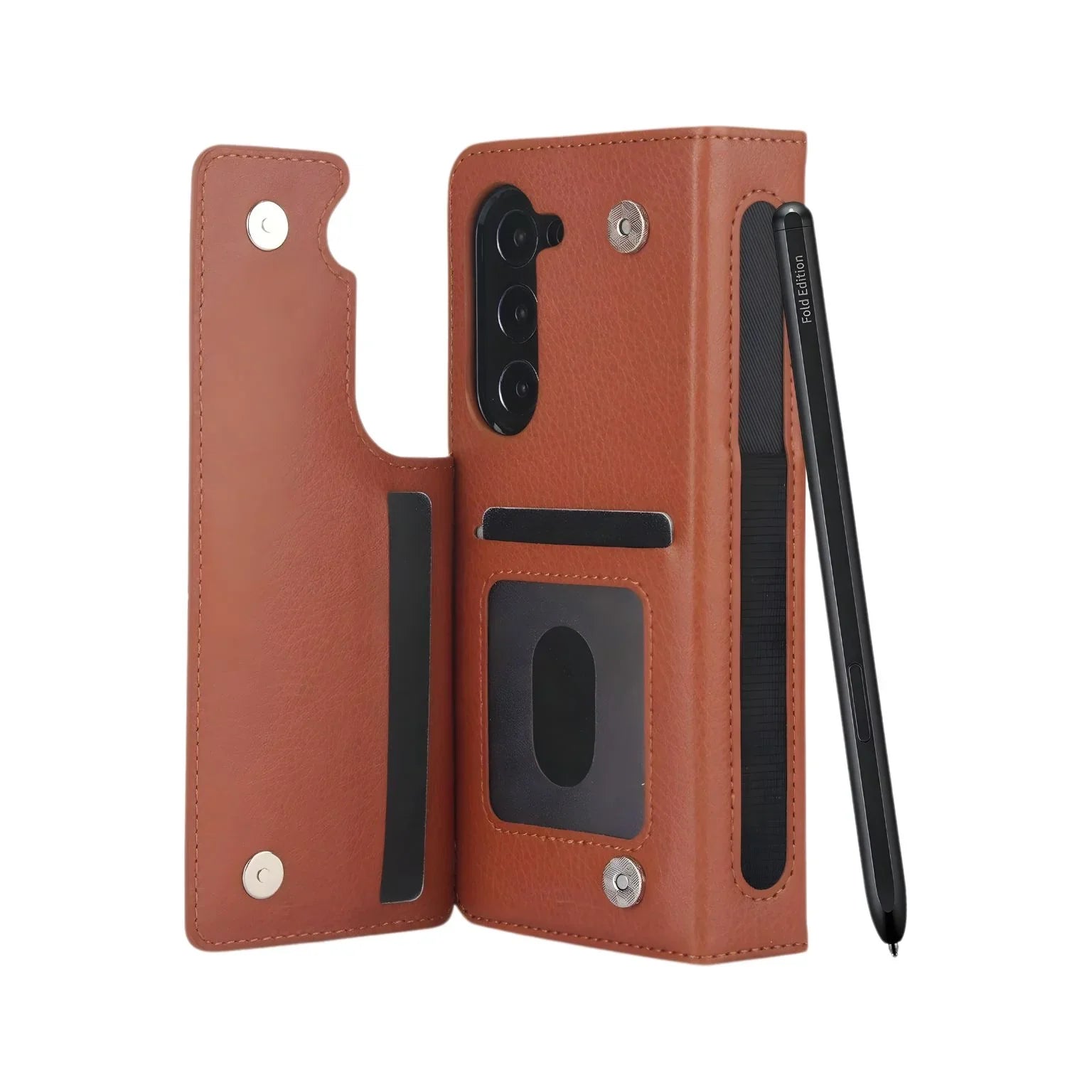 Elevate your Samsung Galaxy Z Fold with this luxurious leather case. More than just protection, it features a built-in card holder and a convenient stand for hands-free viewing. Crafted from premium leather, it adds a touch of sophistication while maximizing the functionality of your foldable device.